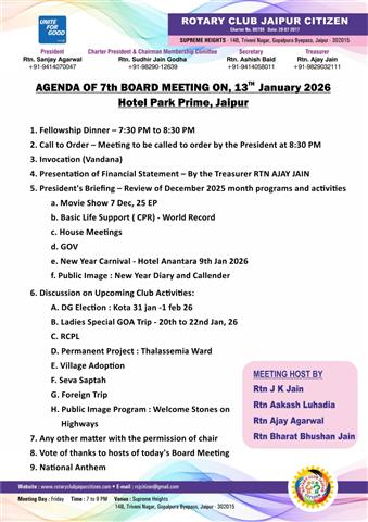 Our club’s 9th board meeting held at City Heights, JLN Road, Jaipur. . .
